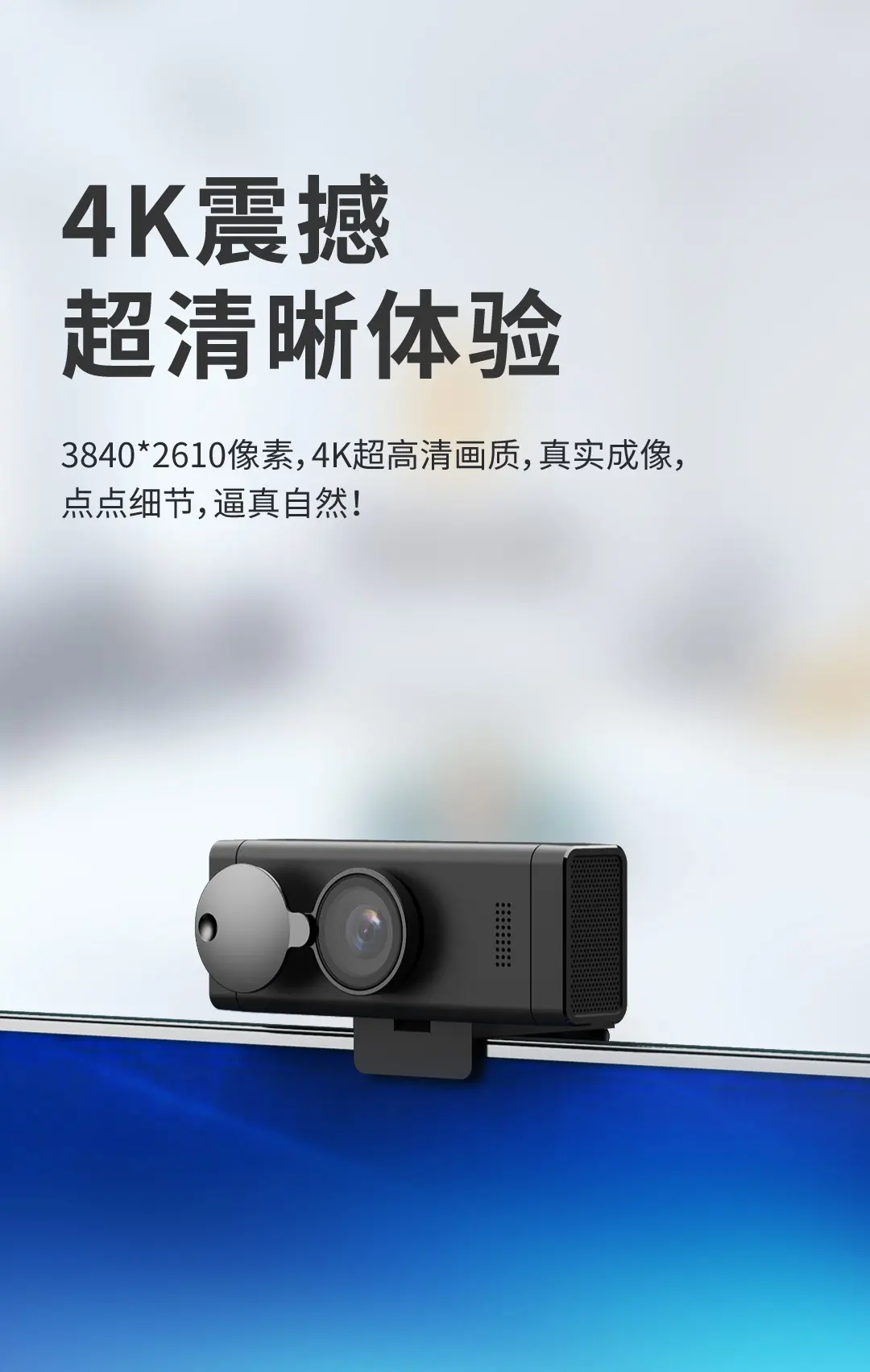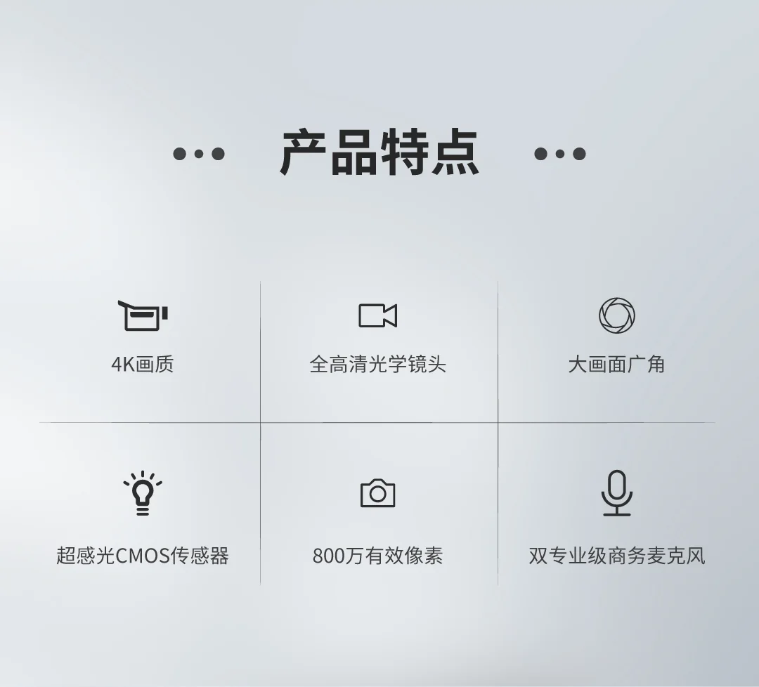 搭載雙專業級商務麥克風,800W有效像素,擁有鏡頭遮蓋設計,全高清光學鏡頭,擁有鏡頭遮蓋設計