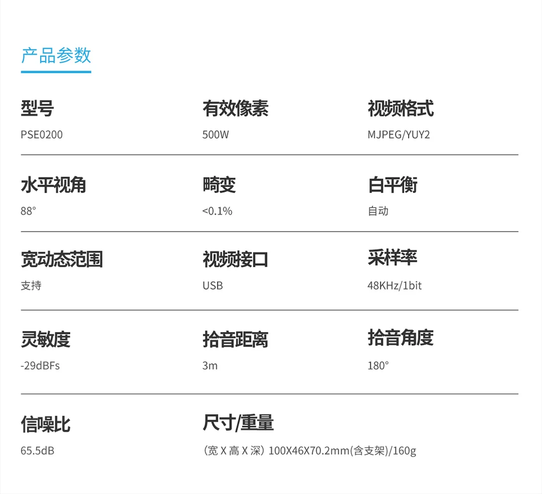 30fps高幀頻,500w有效像素,搭載1/2.8”CMOS傳感器